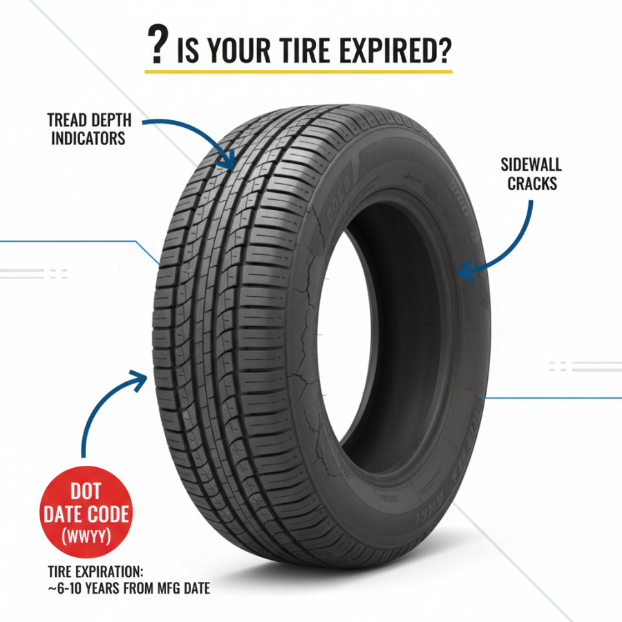 เคล็ดลับ: ยางส่วนใหญ่ปลอดภัยประมาณ 5 ปี นับจากวันผลิต แม้ดอกยางยังใหม่ แต่คุณสมบัติทางเคมีเสื่อมลงแล้ว