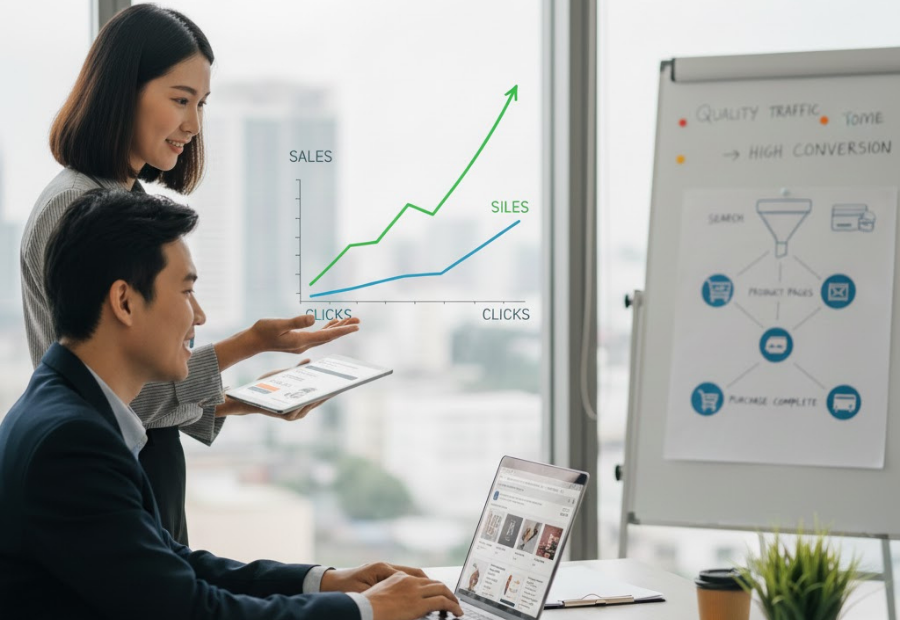 - ผลลัพธ์ที่ได้: คนที่คลิกเข้ามาคือคนที่ กำลังจะกดสั่งซื้อ อยู่แล้ว ทำให้โอกาสที่พวกเขาจะกลายเป็นลูกค้าของคุณนั้นสูงขึ้นกว่าทราฟฟิกจากโฆษณาทั่วไปมากค่ะ